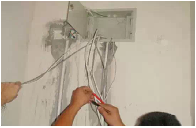 如果是在墙的下部,垂直向下开槽,至安装踢脚板的底部。槽深15毫米左右,将电线 导线装入护线套管,卧入墙面槽内,用水泥砂浆抹平,使之固定在墙内。如果原插座保留,则重新安装在原位置上,如果不保留,则应用砖块填堵后,用水泥砂浆抹 平。沿地面的导线,在安装踢脚板时,卧于踢脚板的底部内侧,沿顶角的导线,在安装装饰线时,隐蔽在装饰角线的内部。