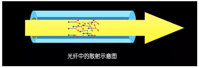 光纤内部的散射,会减小传输的功率,产生损耗。散射中最重要的是瑞利散射,它是由光纤材料内部的密度和成份变化而引起的。