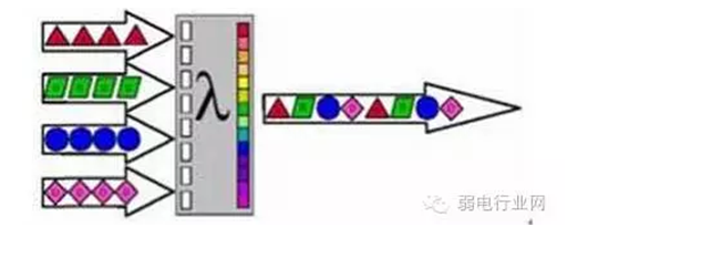 波分复用(WDM)是将两种或多种不同波长的光载波信号(携带各种信息)在发送端经复用器(亦称合波器,Multiplexer)汇合在一起,并耦合到光线路的同一根光纤中进行传输的技术; 在接收端,经解复用器(亦称分波器或称去复用器,Demultiplexer)将各种波长的光载波分离,然后由光接收机作进一步处理以恢复原信号。这种在同一根光纤中同时传输两个或众多不同波长光信号的技术,称为波分复用。